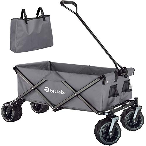 tectake® Folding Garden Trolley with 4 Wheels, Removable Tarpaulin, Sturdy Steel Frame, 2 Mesh Pockets & Extra Wide Tyres, Incl. Carry Bag - 80kg Capacity Trolley on Wheels for Festival - Grey