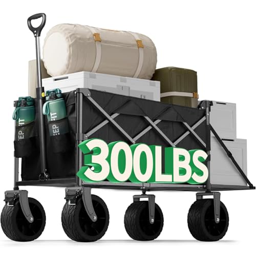 BEAU JARDIN XXL Festival Trolley Beach Cart - 300L 230KG(500LBS) Heavy Duty Folding Wagon All-Terrain Utility Wide Wheels for Camping & Shopping | Push & Pull Handle | Portable Collapsible | Black