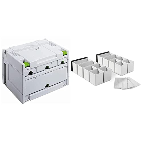 Festool 491522 SYS 3-SORT/4 Sortainer, White & 201124 Set 60x60/120x71 3Xft Plastic containers, White, Set of 12 Pieces