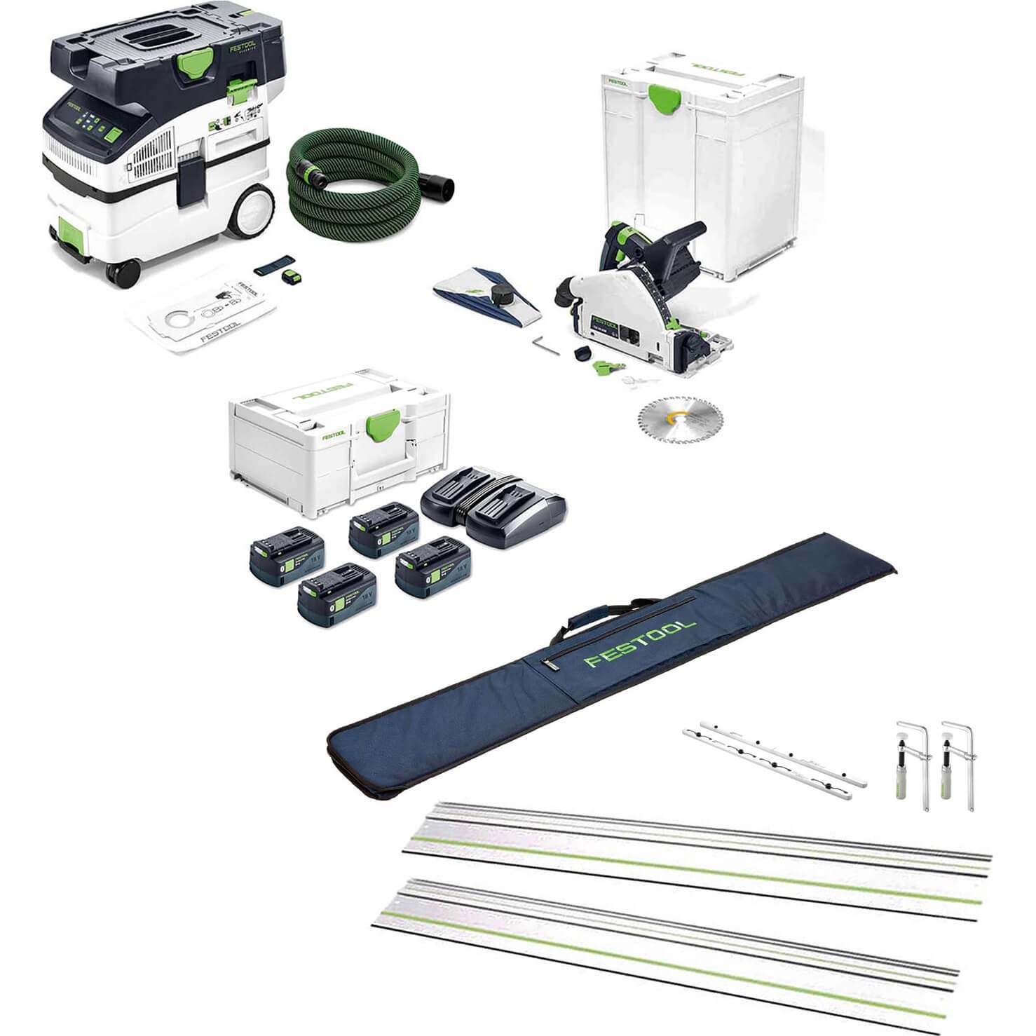 Festool TSC 55 Cordless Plunge Saw and M Class Extractor Kit 4 x 5ah Li-ion Battery Charger Case