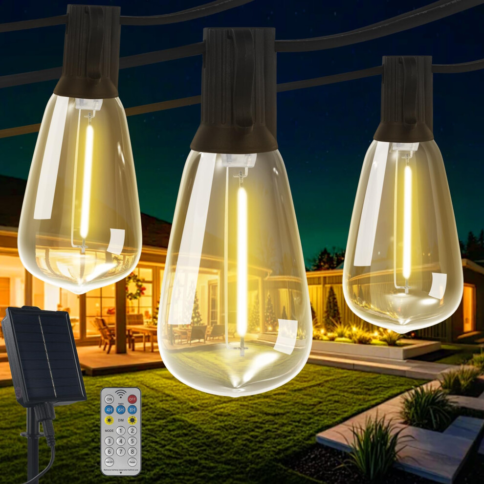 litogo Solar Festoon Lights Outdoor with Remote, 25+2 Bulbs Solar String Lights Outdoor Garden Dimmable, 30Ft/9M 8 Modes Patio Light for Outside Wedd