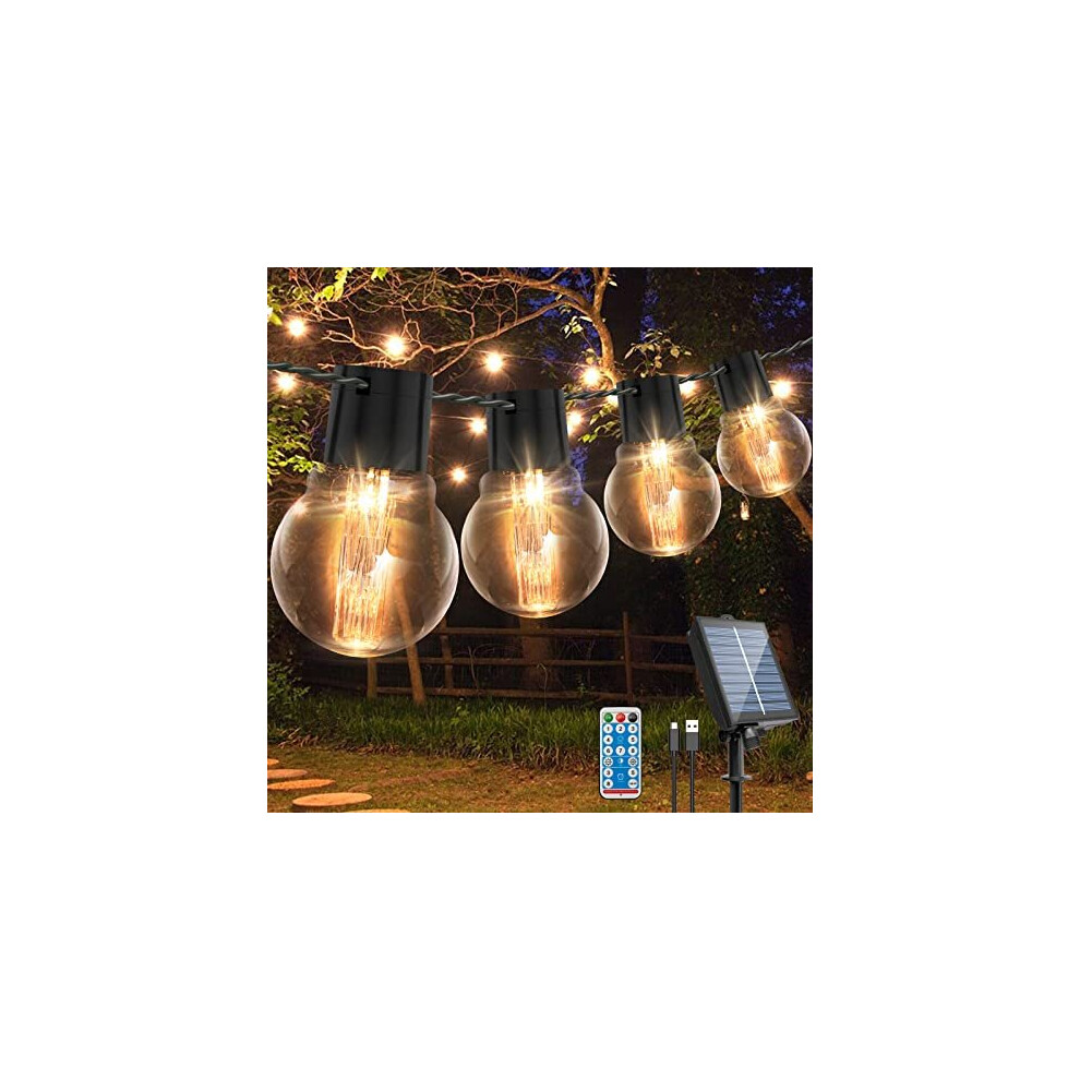Solar Festoon Lights Outdoor, 9M/29.5FT G50 20 Bulbs Solar String Lights Outdoor Garden, Remote Control, 8 Modes 4 Brightness, Outdoor Solar Lights