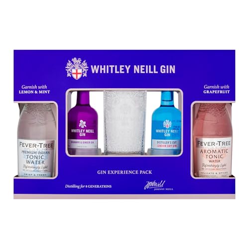 Whitley Neill Gin Gift Set - Flavoured Experience Pack 1x 5cl London Dry, 1x 5cl Rhubarb & Ginger, 2x Fever Tree Tonic Water, Hi-Ball Glass, Gin Gifts for Women, Men, Birthday Alcohol Gifts, Christmas