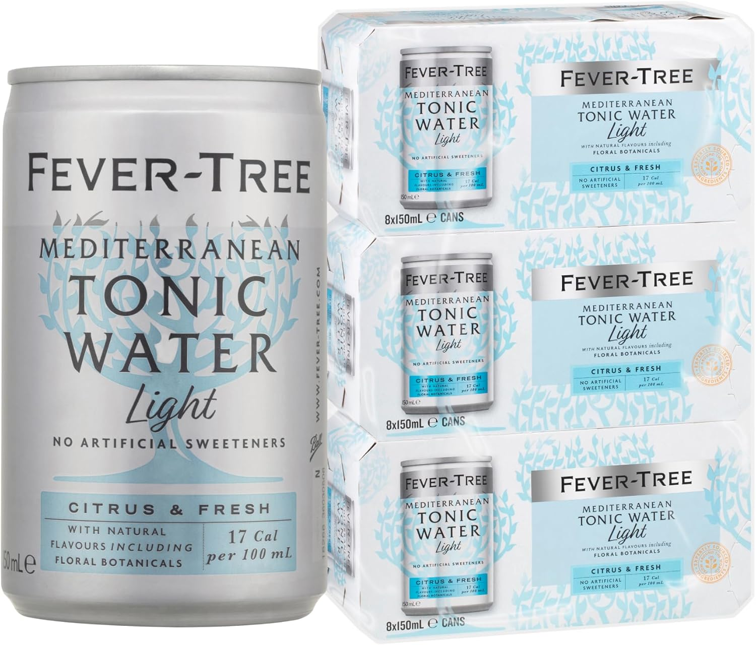 Fever-Tree Refreshingly Light Indian Tonic Water 8 x 150ml (Pack of 3, Total 24 cans) & Refreshingly Light Mediterranean Tonic Water 8 x 150ml (Pack of 3, Total 24 cans)