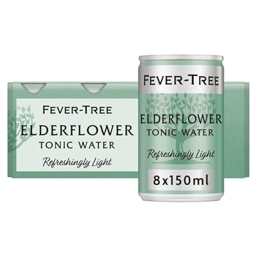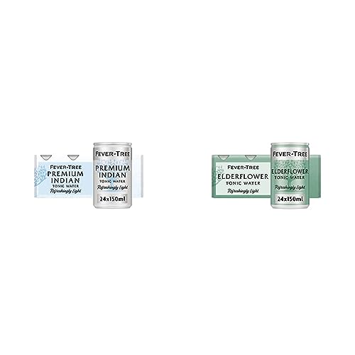 Fever-Tree Refreshingly Light Indian Tonic Water, 150ml, 8 Count (Pack of 3) (Total 24 cans) & Refreshingly Light Elderflower Tonic Water 8 x 150ml (Pack of 3, Total 24 cans)