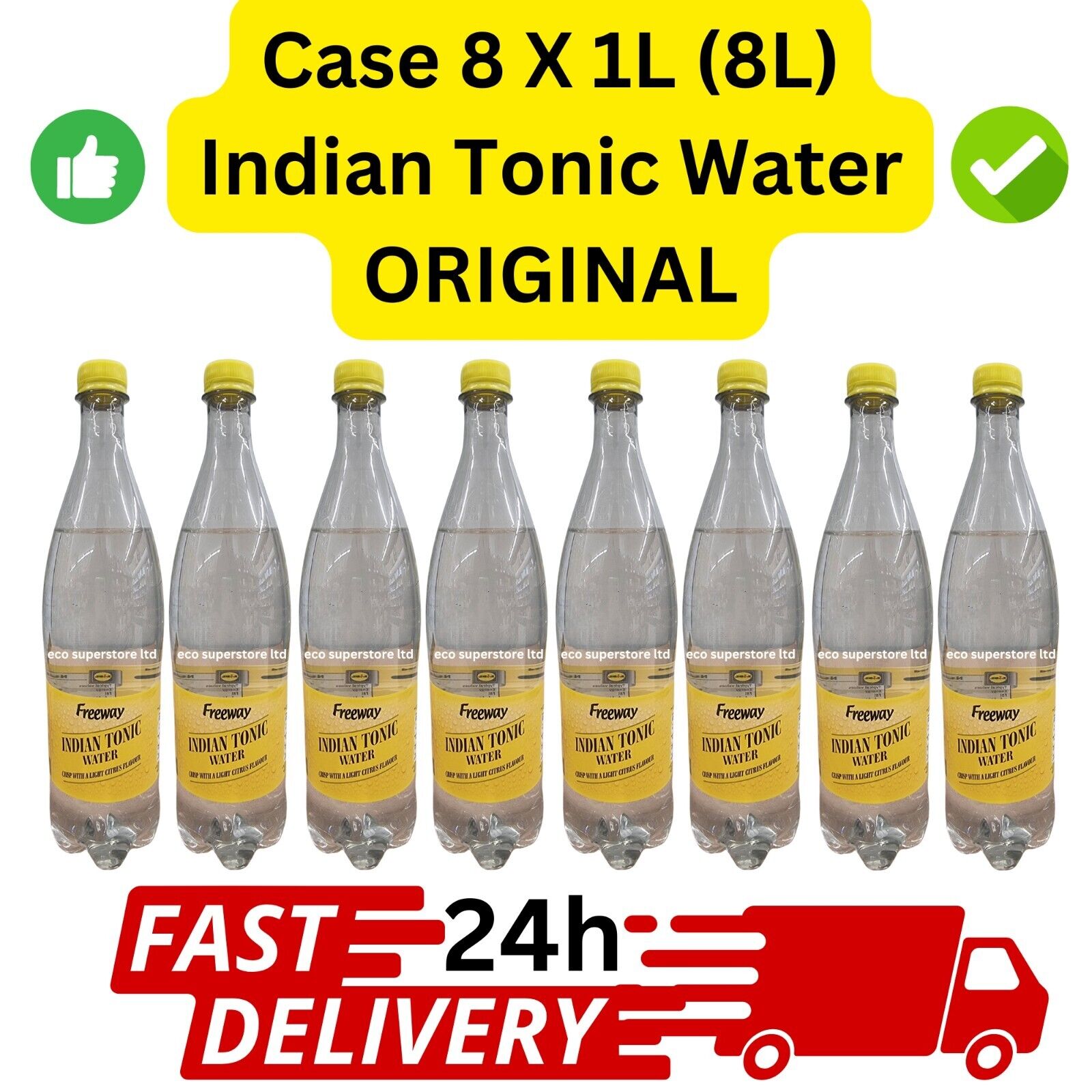 FREEWAY PREMIUM INDIAN TONIC WATER 8 X 1000ML BOTTLES CARBONATED TONIC WATER