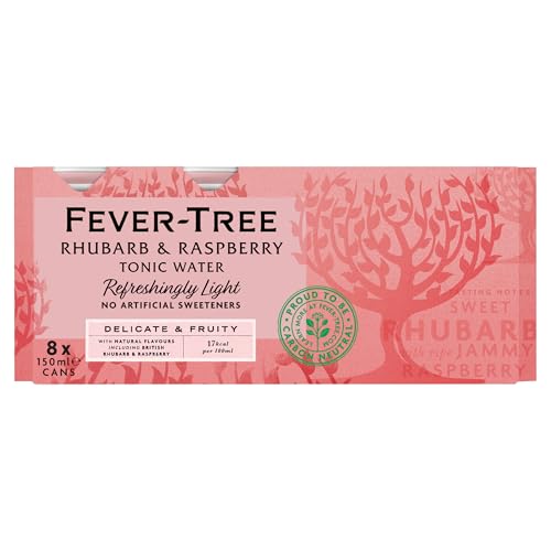 Fever-Tree Refreshingly Light Rhubarb & Raspberry Tonic Water 8 x 150ml (Pack of 6, Total 24 cans)