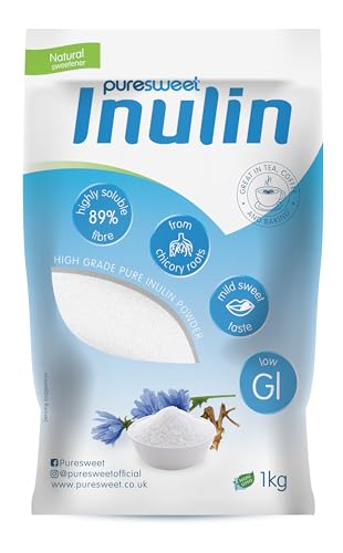 Puresweet® Premium Inulin Prebiotic Fibre Powder 1kg - Chicory Root, 100% Pure Inulin, Highly Soluble, Made in The EU, Fructo Oligosaccharide (FOS), Gluten Free, Vegan.