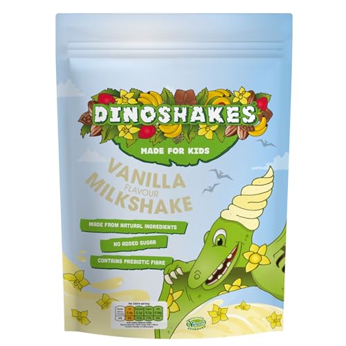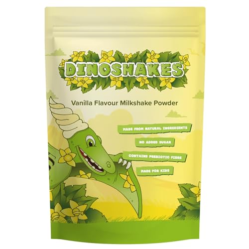 Dinoshakes Vanilla Milkshake Powder for Kids with All Natural Ingredients, High in Fibre, Vegan Friendly & No Added Sugar, 250g