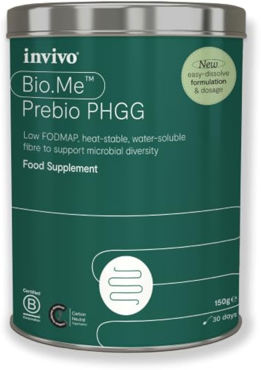 Bio.Me Prebio PHGG (150g Tin - 30 Day Supply) - Prebiotic Fibre Powder Supplement - Water Soluble Fibre to Support Microbial Bacteria Diversity in The Gut - Vegan Friendly & Gluten Free - by Invivo