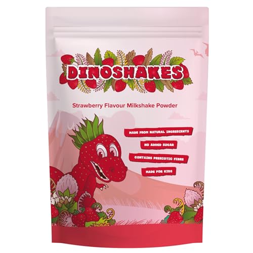 Dinoshakes Strawberry Milkshake Powder for Kids with All Natural Ingredients, High in Fibre, Vegan Friendly & No Added Sugar, 1kg