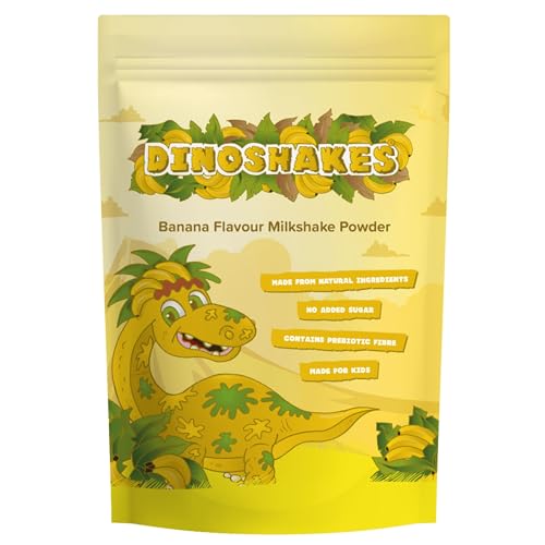 Dinoshakes Banana Milkshake Powder for Kids with All Natural Ingredients, High in Fibre, Vegan Friendly & No Added Sugar, 1kg
