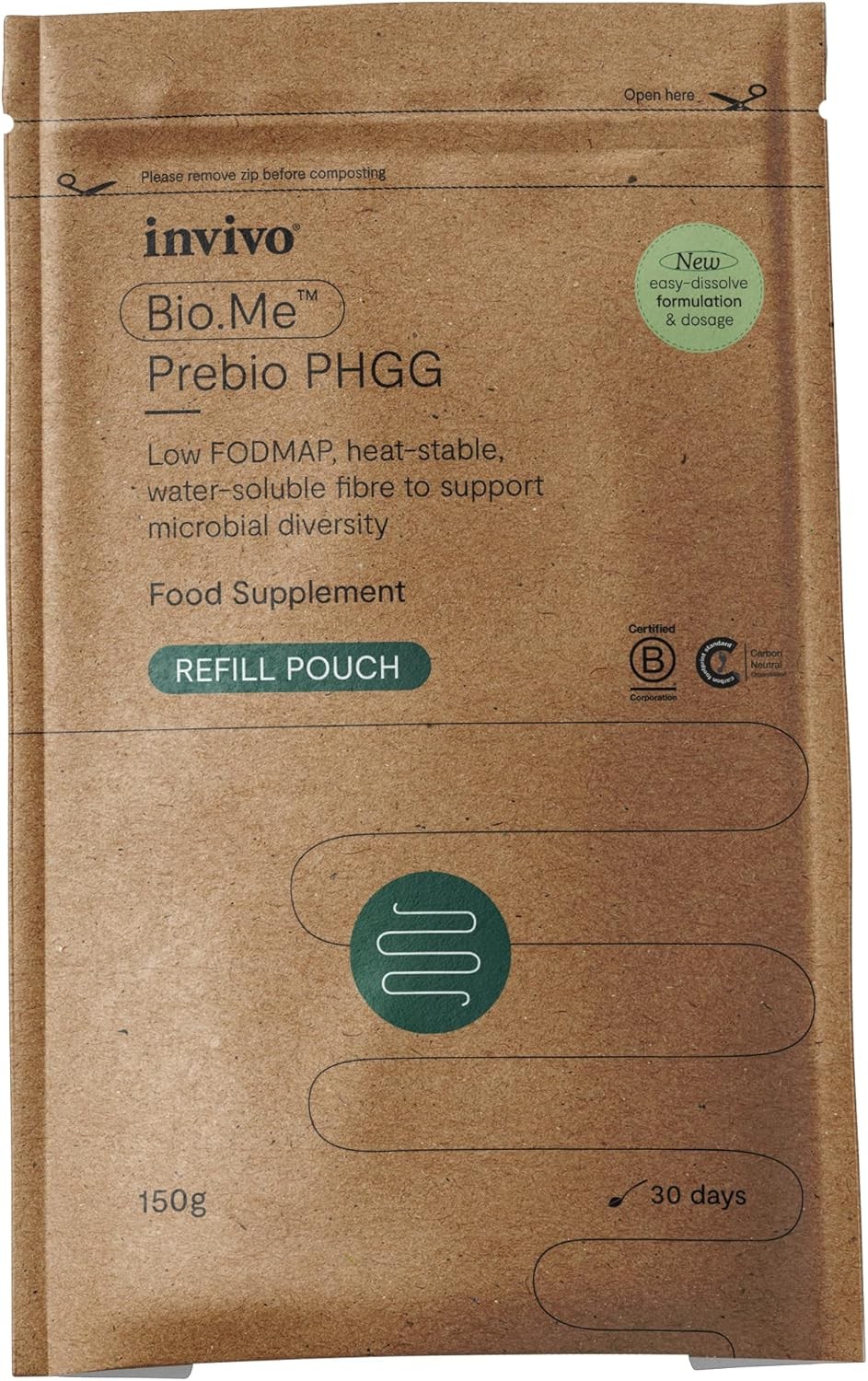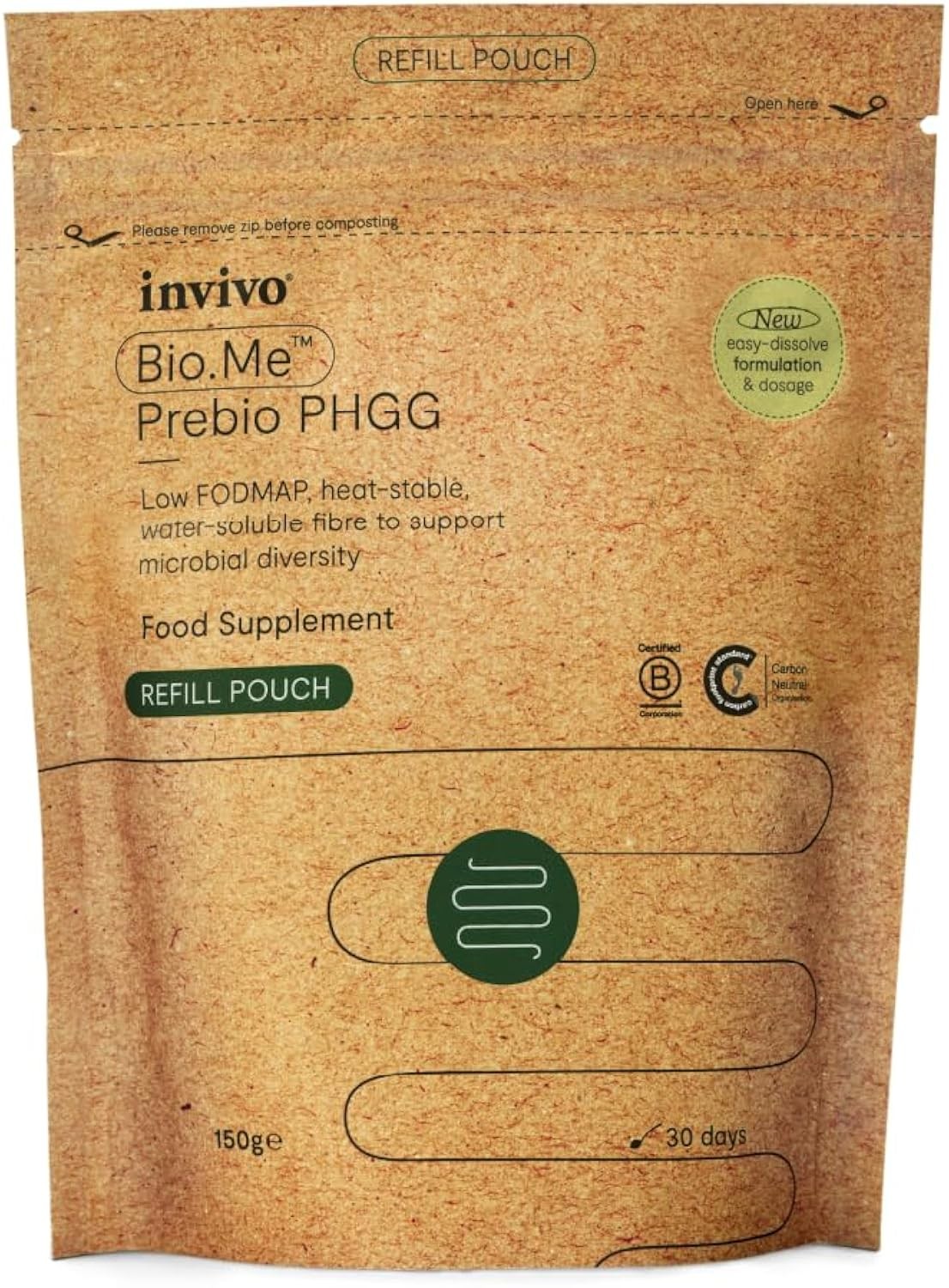 Bio.Me Prebio PHGG Refill Pouch (30 Day Supply) - Prebiotic Fibre Powder Supplement - Water Soluble Fibre to Support Microbial Bacteria Diversity in The Gut - Vegan Friendly & Gluten Free - by Invivo