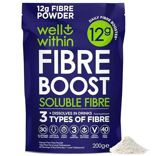 12g Soluble Fibre Supplement, 40% NHS Daily Intake, 3in1 Fibre Powder : Inulin Acacia FOS (Fructooligosaccharides) Prebiotics for Gut Health (200g Bag, 30 x 6g Fiber) Well Within Pre Biotic Drink