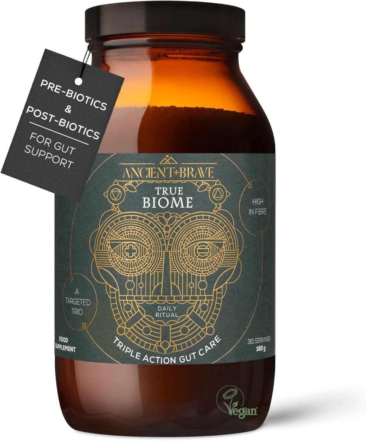 Ancient + Brave True Biome Fibre Gut Health Powder Prebiotics Postbiotics L-Glut