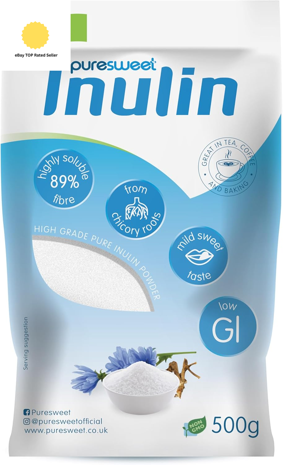 Inulin Prebiotic Fibre Powder 500g by Puresweet®, Chicory Root, Highly Soluble
