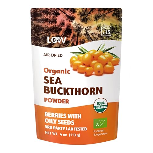 LOOV Organic Sea Buckthorn Powder, High in Fibre, Made from 100% Whole Berries, 113 g, Grown in Nordic Climate, Rich in Omega Blend, Vitamin C, Vitamin E, 23-Day Supply, No Added Sugar, Non-GMO