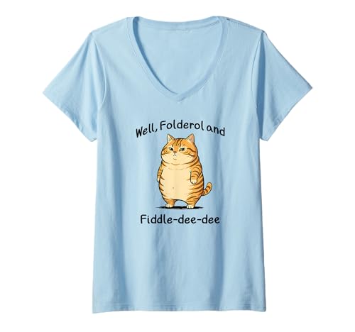 Womens Snarky Cat Well, Folderol and Fiddle-dee-dee nonsense V-Neck T-Shirt