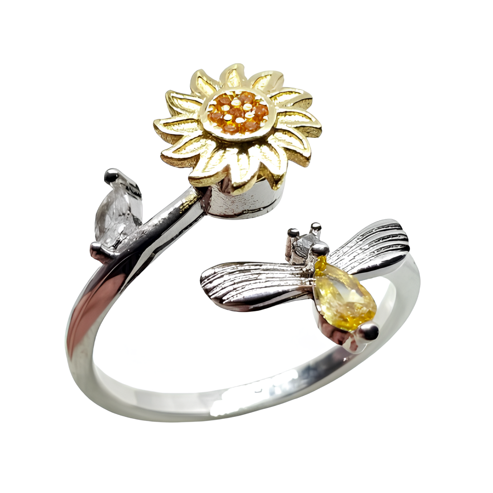 Sun Flower Ring Spinner Anti Anxiety Bee Ring Fidget Ring Adjustable Jewellery