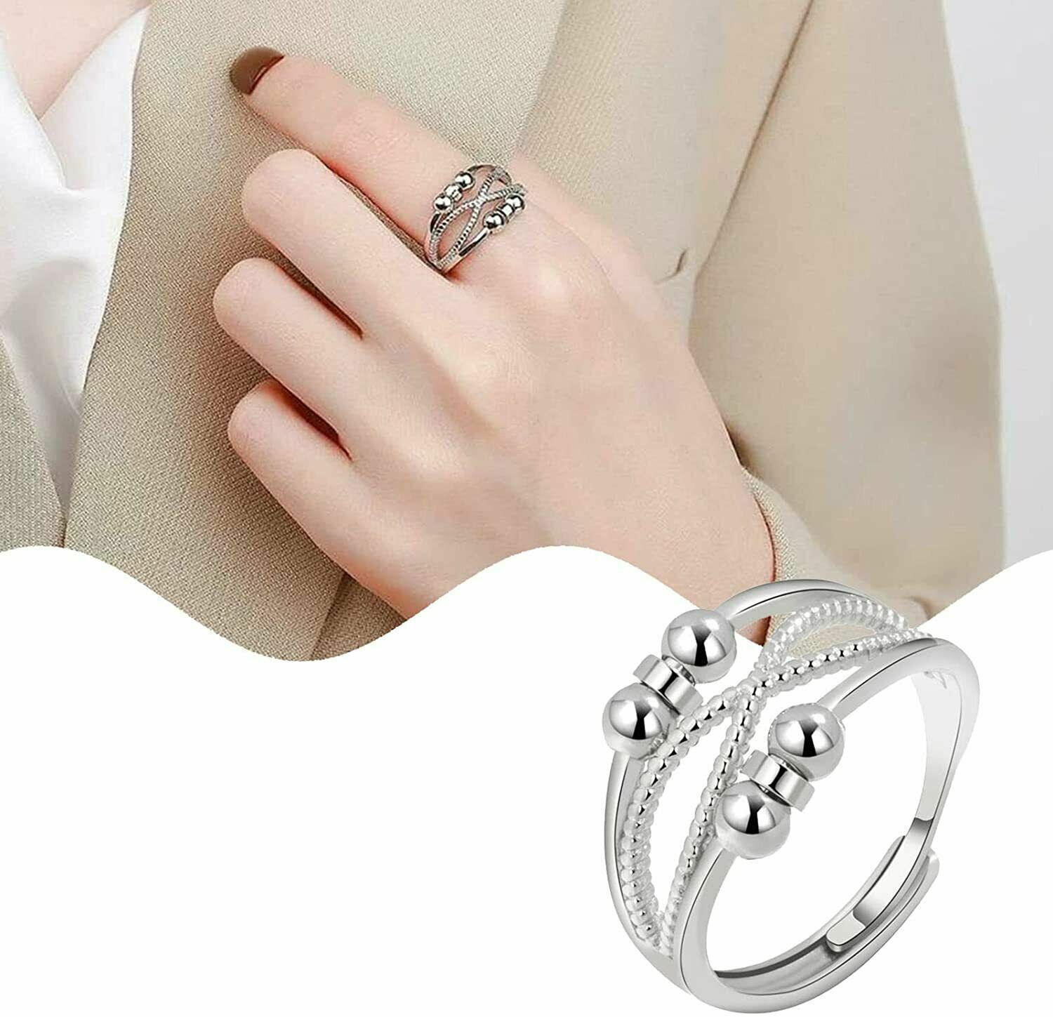Fidget Ring Anti Anxiety Anti Stress 10 Ball Spinner Worry Bead Ring Jewellery