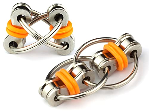Flippy Chain Fidget Toy by Tom's Fidgets - Perfect for ADHD, Anxiety, and Autism - Bike Chain Fidget Stress Reducer for Adults and Kids (Orange 2PK)