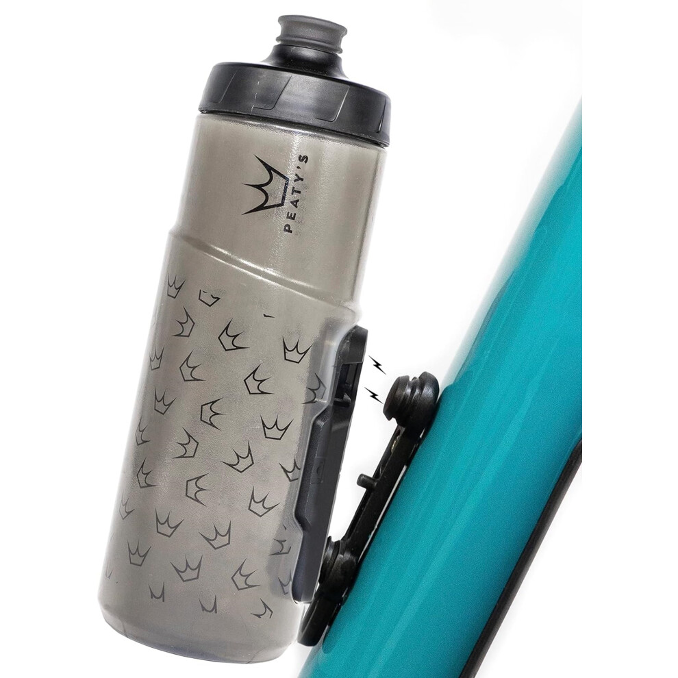Peaty's x Fidlock Lockin Magnetic 750ml Bike Water Bottle & Mount - Bike Drink Holder and Bottle Set, Premium Alternative To Cage, Twist & Release, Bicycle and Cycling Accessories - Crown Smoked