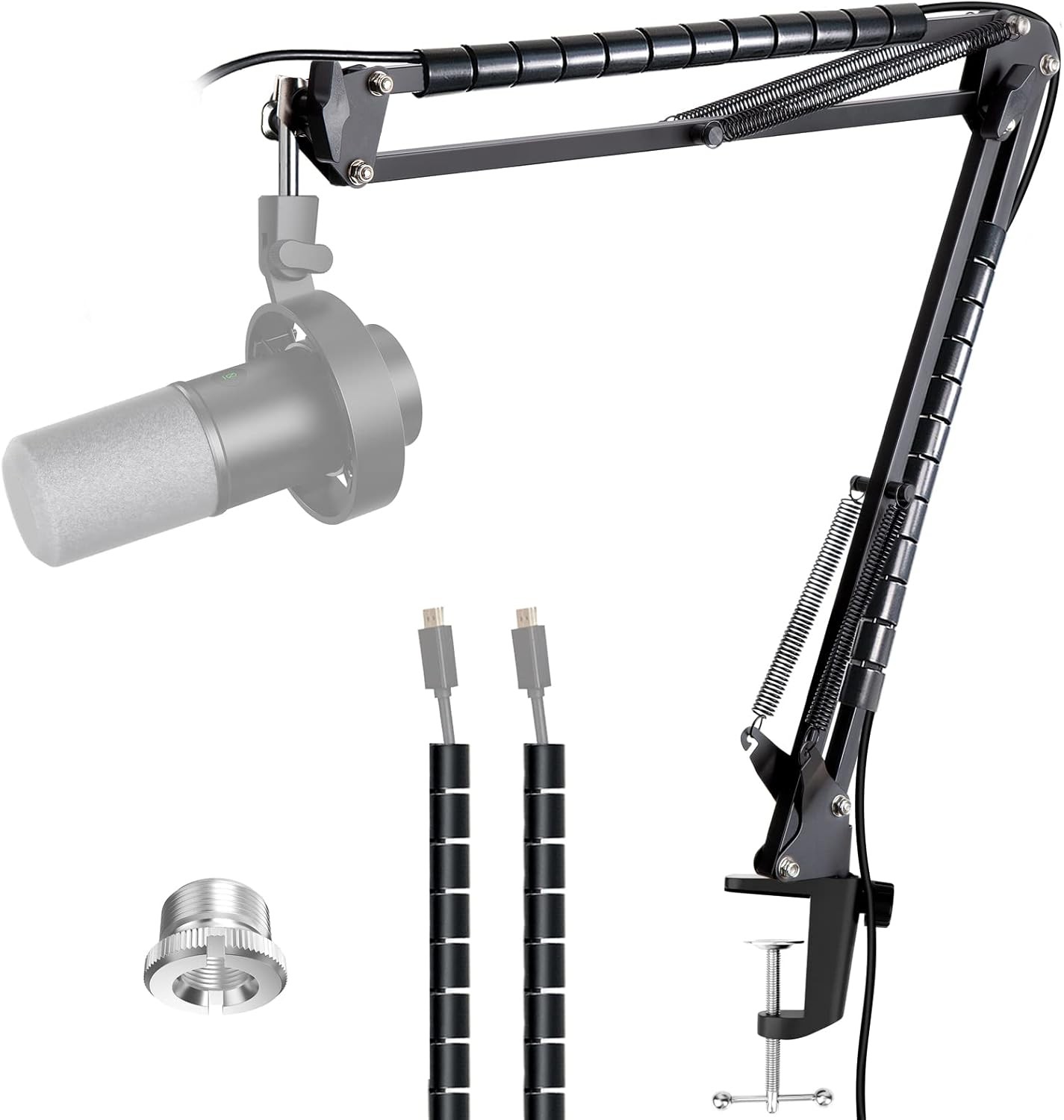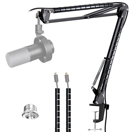 Boom Arm Mic Stand for Blue Yeti, HyperX Quadcast, Nano, Snowball, Elgato Wave, Fifine K688 and Other Mic, Adjustable Microphone Arm Stand with 3/8" to 5/8" 1/4" Screw, Pop Filter Mic Clip Cable Ties