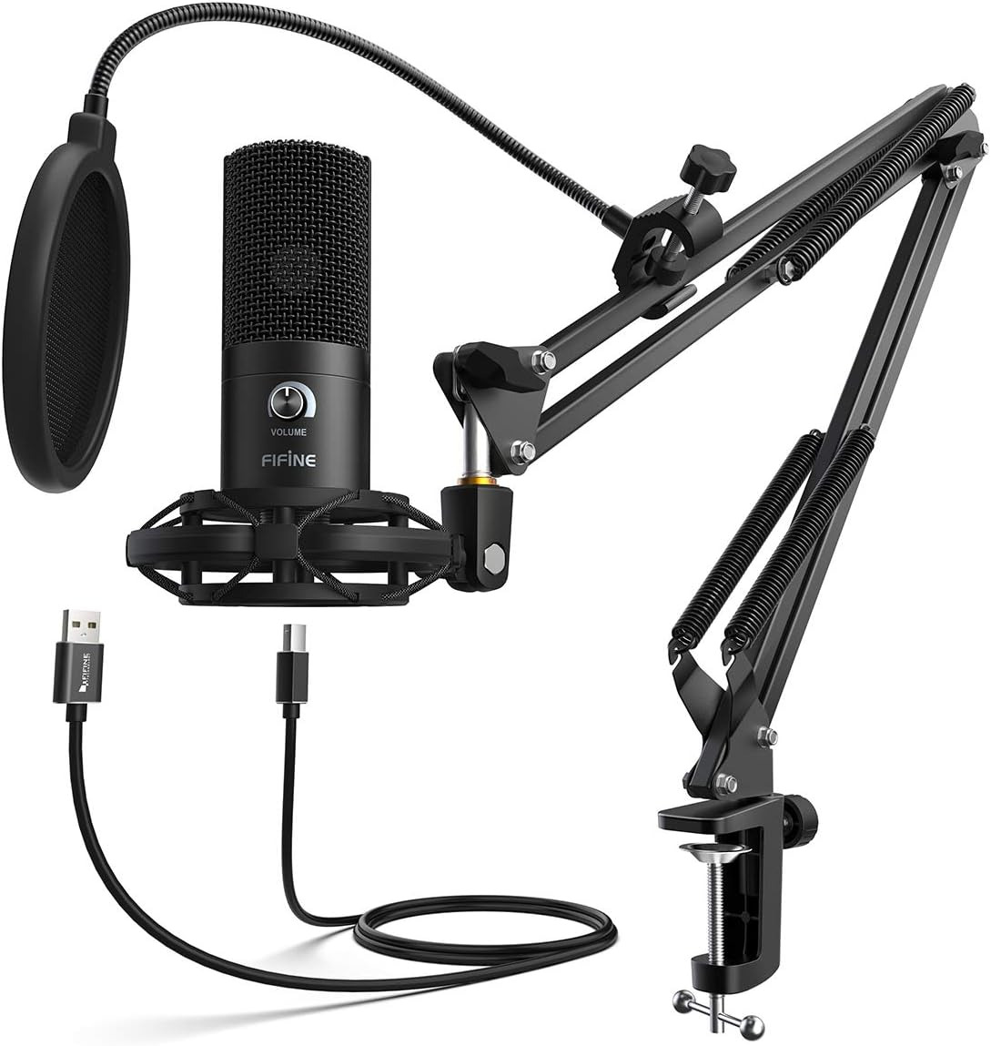FIFINE USB Microphone Kit Condenser Studio Microphone for Computer, PC Mic with