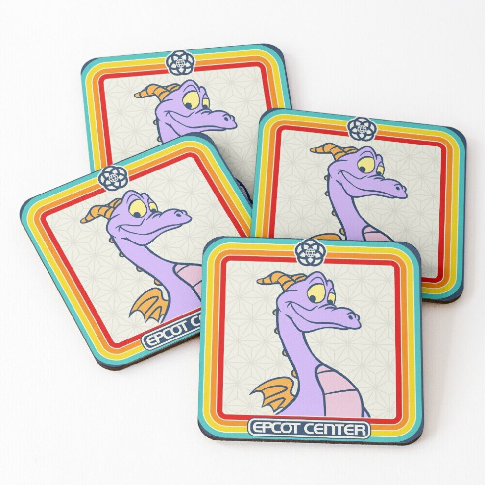 Leather Coasters EPCOT Center Figment Rainbow stripe Frame Set of 4 / 4 x 4 inch