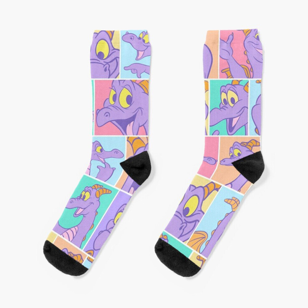 Dress Socks EPCOT CENTER Figment Badge Novelty Fancy Crazy Pattern Crew Casual for Men Women