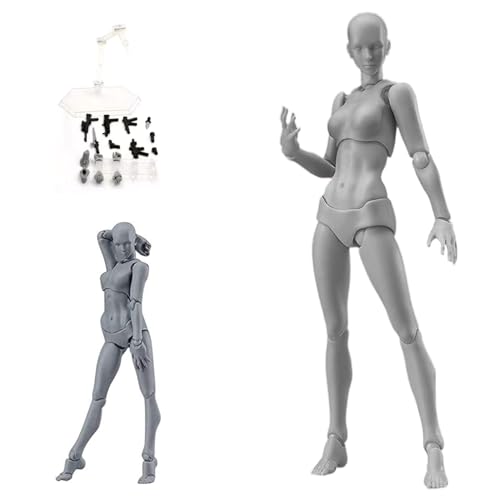 AXITWXIT Action Figures Body-Kun DX & Body-Chan DX PVC Figure Model Drawing for S H Figuarts with Box for Artists (Gray, Female)