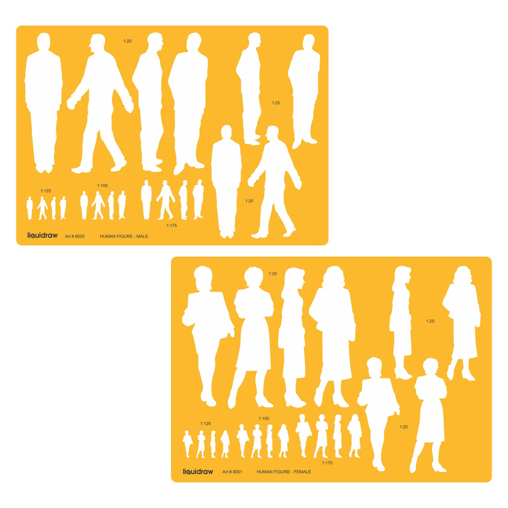 Human Figure Drawing Template Stencil Male & Female Figures Model for Fashion Designing, Art & Symbols Shapes Scales 1:20 1:25 1:75 1:100 1:125