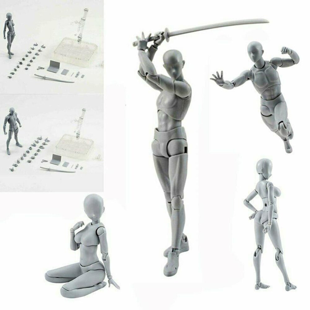 JUNENTER Body Set Drawing Action Figures Women and Men PVC Drawing Doll Human Body Model Mannequin Art Mannequin Figure with Joint for Artists(Grey)