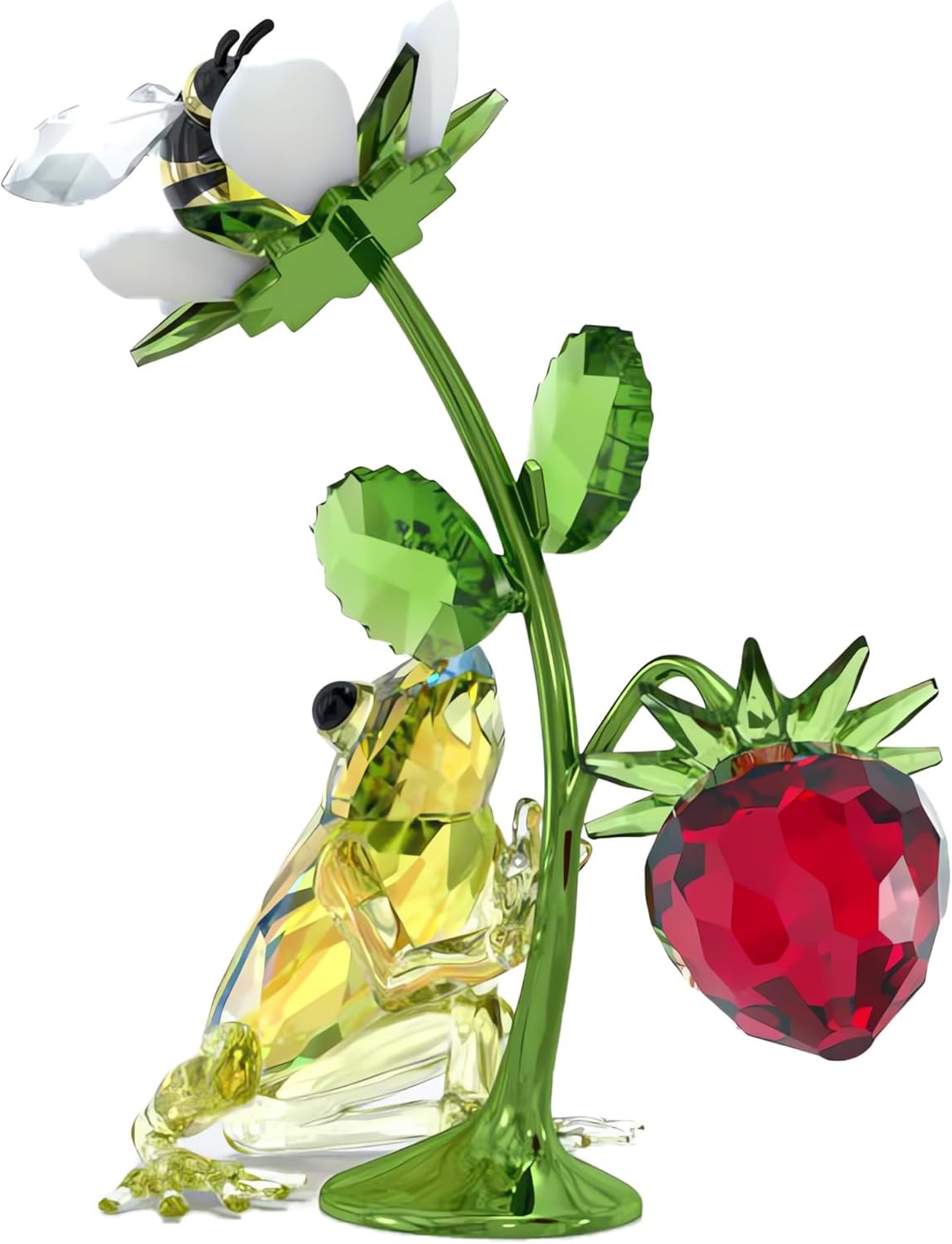 Swarovski Idyllia Frog, Bee and Strawberry Figurine, Multicoloured Crystals with Lacquered Metal Accents, Part of the Idyllia Collection