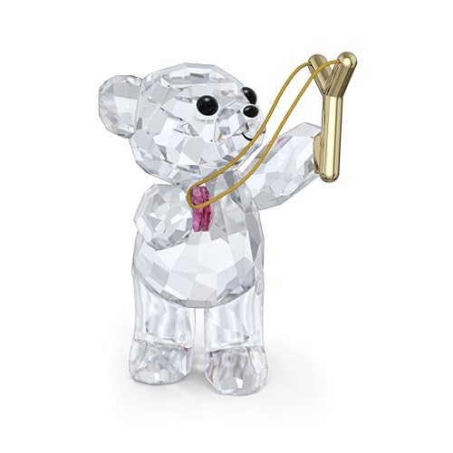 Swarovski Kris Bear Sending You Love Figurine, Clear Faceted Crystal Animal with Pink Crystal Heart and Gold-Tone Metal Slingshot, Part of the Kris Bear Collection