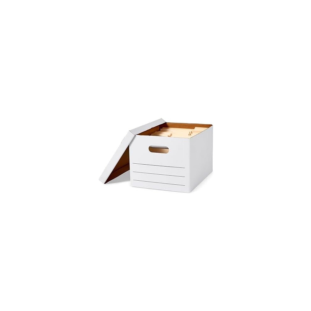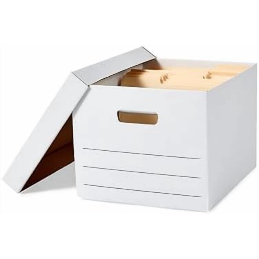 Storage/Filing Boxes with Lift-Off Lid - Letter/Legal Size, Sturdy, Easy Assembly, White, 16.2" L x 12.5" W x 10.5" H, Pack of 20