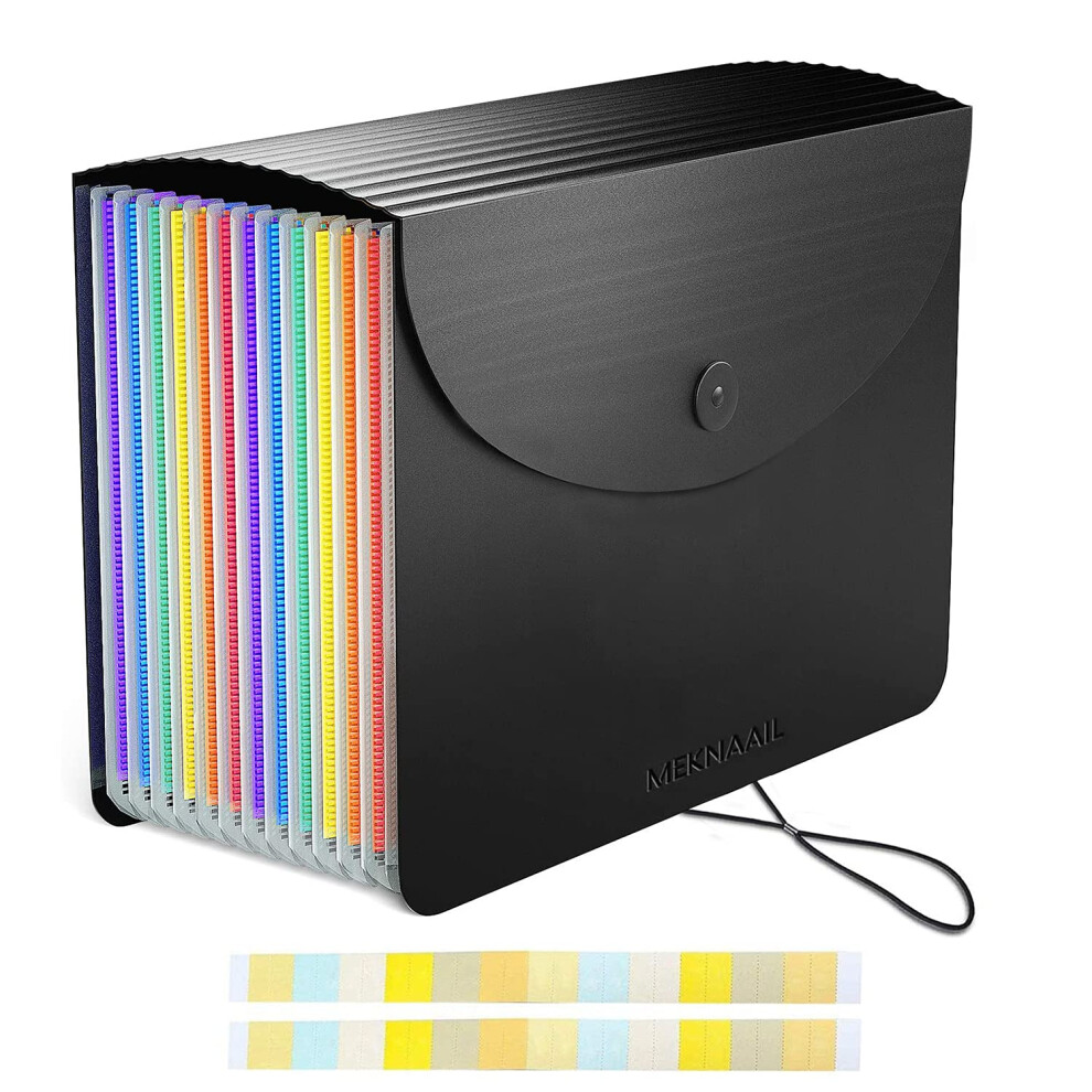 Meknaail File Organiser 13 Pockets A4 Size Expanding Accordion Filing Boxes with Lid