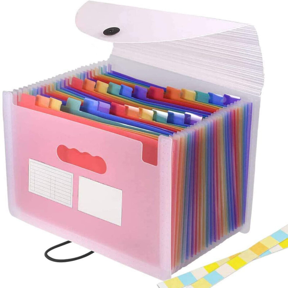 Expanding File Folder 24 Pockets Box File Document Organiser Folder Portable Rainbow A4 File Organiser Accordion Document Filing Boxes High Capacity