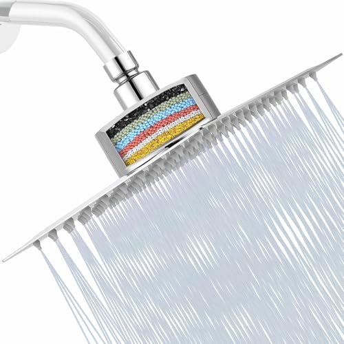 Katezon Filtered Shower Head, High Pressure Showerhead with Filter for Hard Water Remove Chlorine and Harmful Substances, 25 cm Square Rainfall Shower Head (Chrome)