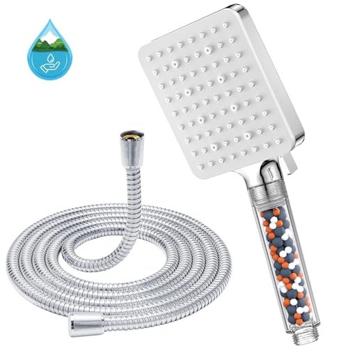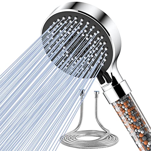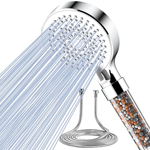VEHHE Shower Head and Hose, High Pressure Filter Shower Head 3 Mode Boosting with Beads, Handheld Powerful Flow Showerheads Hard Water Softener with Extra Replaceable Accessories for Children Pet Home