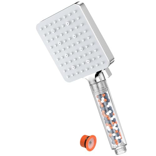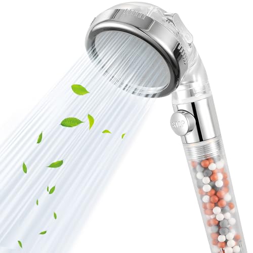 VEHHE Filter Shower Head, Upgraded High Pressure Shower Heads with Beads 3 Modes Boosting, Universal Hard Water Softener Shower Head with Extra Replaceable Accessories for Adult Children Pet Home Use