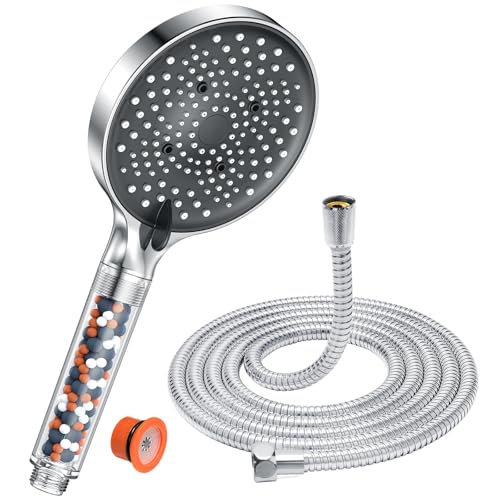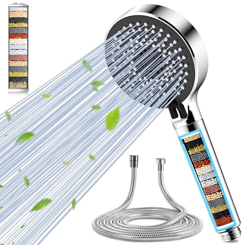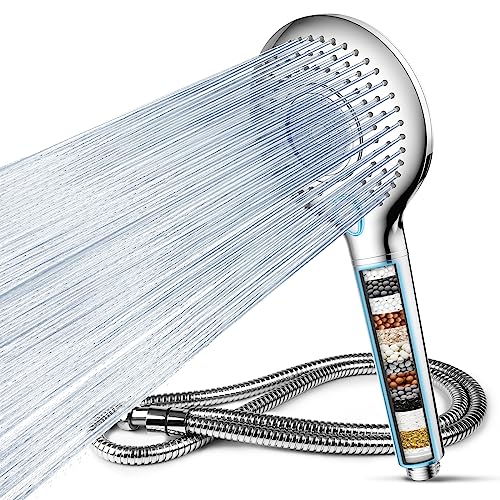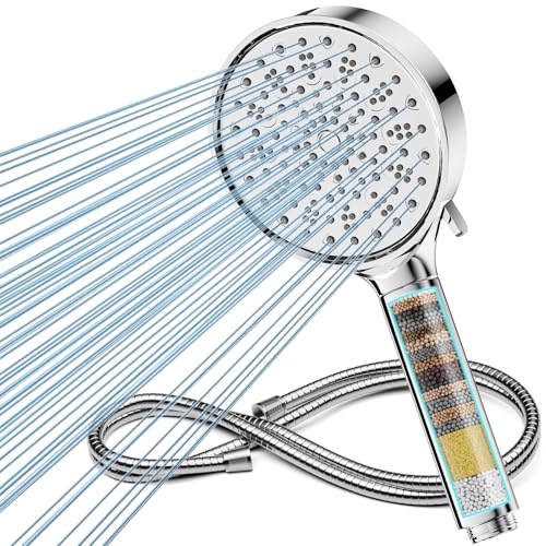 Cobbe Hard Water Filter Shower Head and Hose with 20 Stage Filter, 6 Spray Jet Modes High Pressure Bathroom Shower Head, Large Powerful Handheld Showerhead for Residual Chlorine Remove