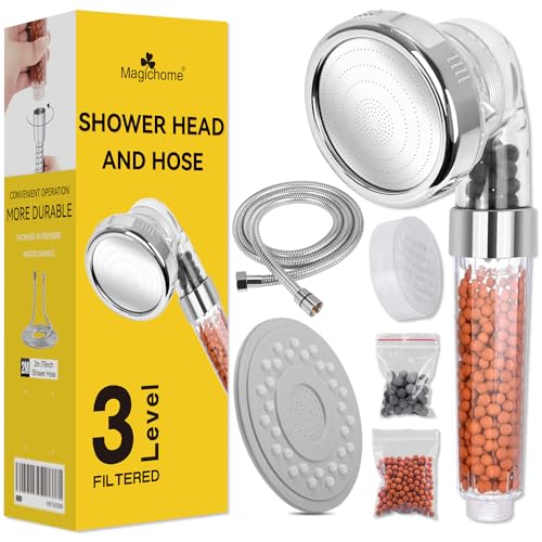 Magichome Shower Head and Hose 2m, 3-Layer Filtration Ionic Shower Head, Universal Filter Shower Heads for Hard Water Low Water Pressure with Extra Replaceable Accessories