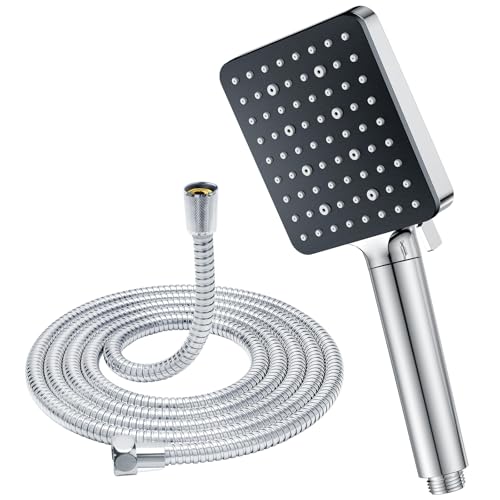 Shower Head, YEAUPE PRO Shower Head and Hose 1.6M,Shower Head Filter,Square High Pressure Shower Heads with 6 Jet Modes,Large Powerful Flow Rainfall Showerhead for Low Pressure Hard Water,Chrome
