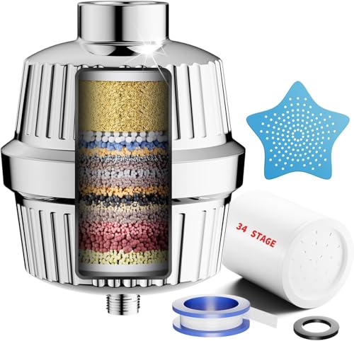 Cobbe 34 Stage Vitamin C Shower Filter, Water Softener Shower Head Filter with Replaceable Multi-Stage Filter Cartridge, Hard Water Filter for Remove Chlorine, Heavy Metal