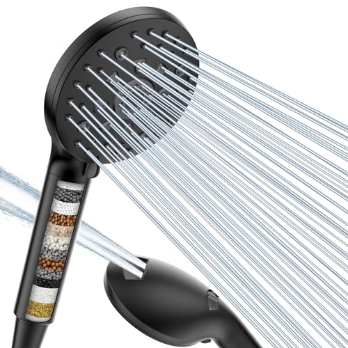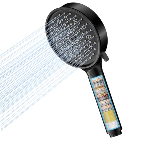 Hard Water Filter Shower Head with 6 Spray Modes, High Pressure Water Saving Shower Head with 20 Layers Filtration, Power Shower Heads with Showerhead Filter for Residual Chlorine Remove, Black