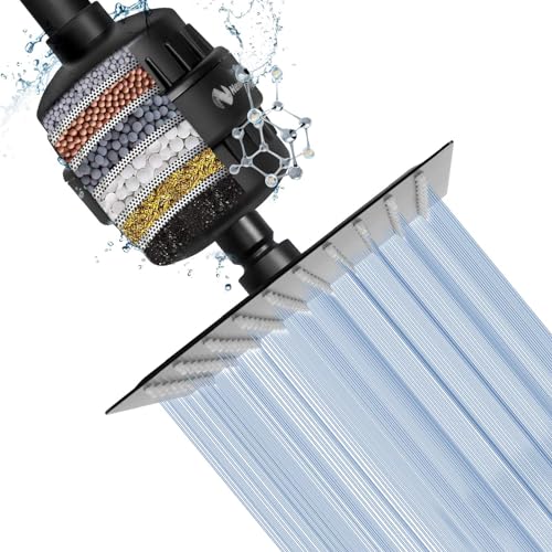 NearMoon Square Shower Head and 15 Stage Shower Filter Combo, High Pressure Filtered Showerhead for Hard Water, Improves The Condition of Your Skin, Hair - 1 Replace Filter Cartridge (Matte Black)