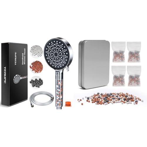 YEAUPE High Pressure Shower Head with 1.5M Hose Powerful Flow Shower Head for Low Pressure Hard & Shower Filter,4 Pack Shower Head Filter for Hard Water,Replacement Shower Water Filter