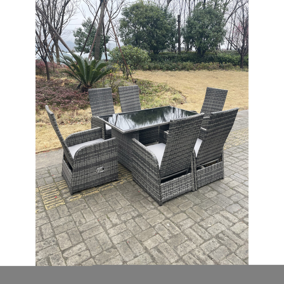 Fimous Outdoor Rattan Garden Furniture Reclining Chair And Table 6 Seater