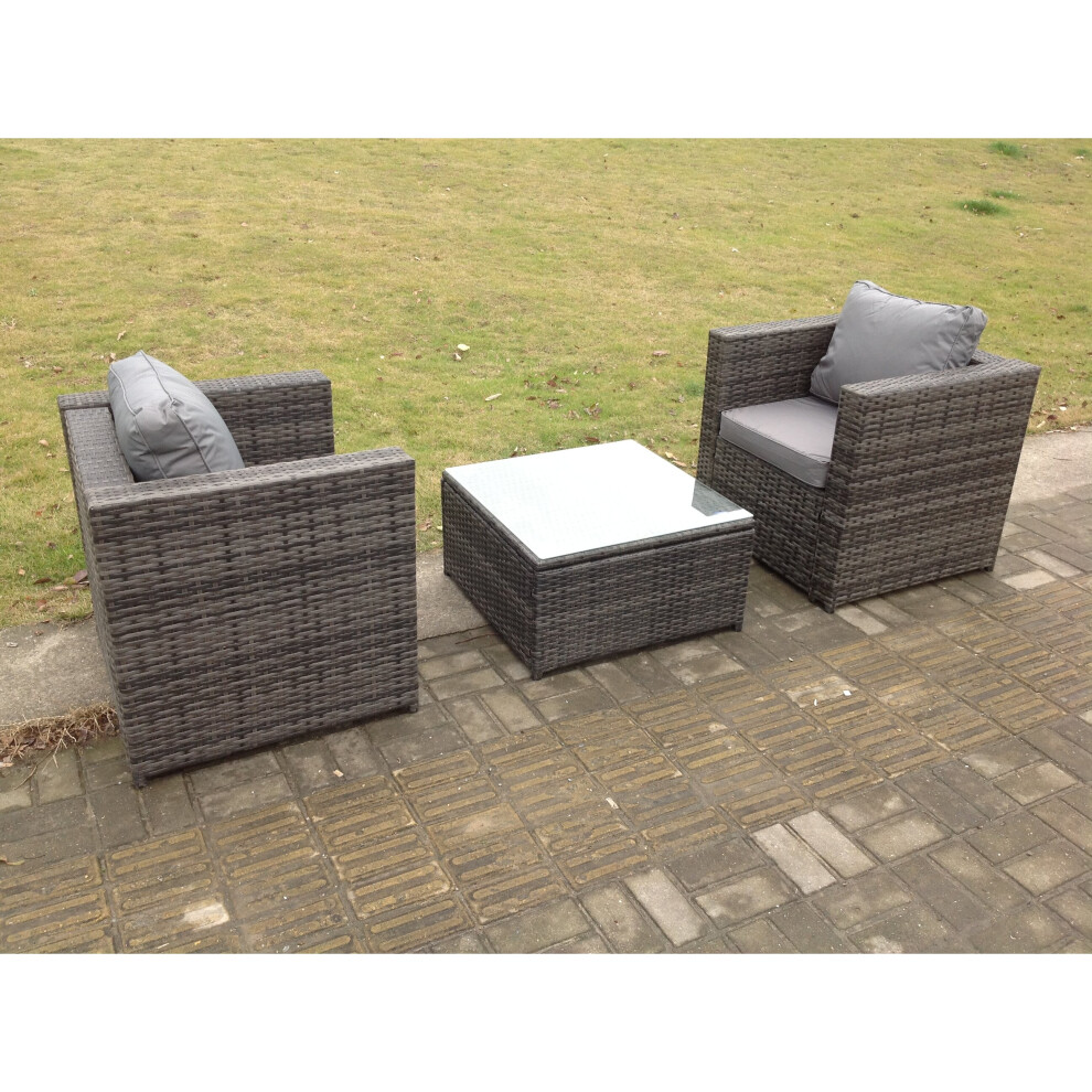 Fimous Rattan Garden Furniture Sets 3 Seater Sofa Square Coffee Table